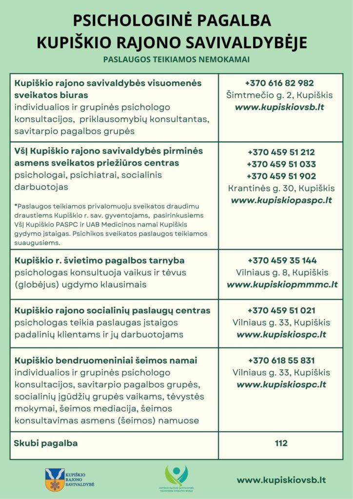 ❗️ psichologinės pagalbos paslaugas Kupiškio rajono savivaldybėje;