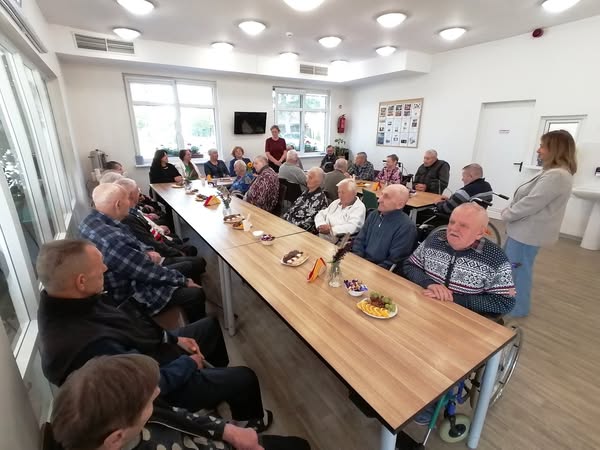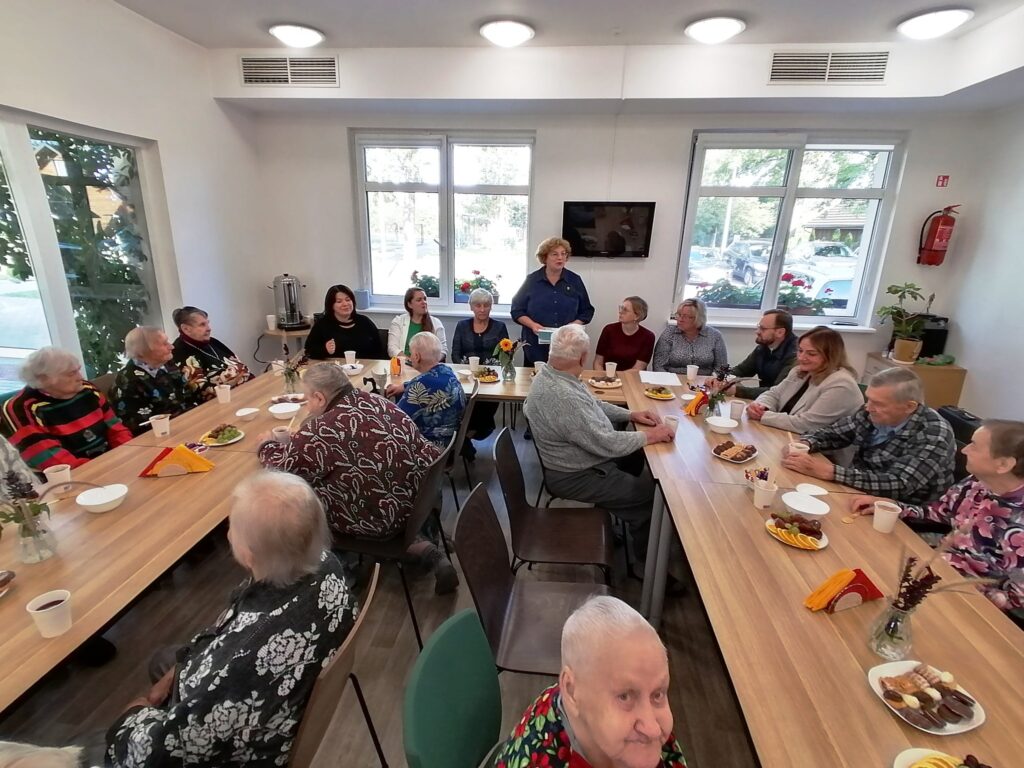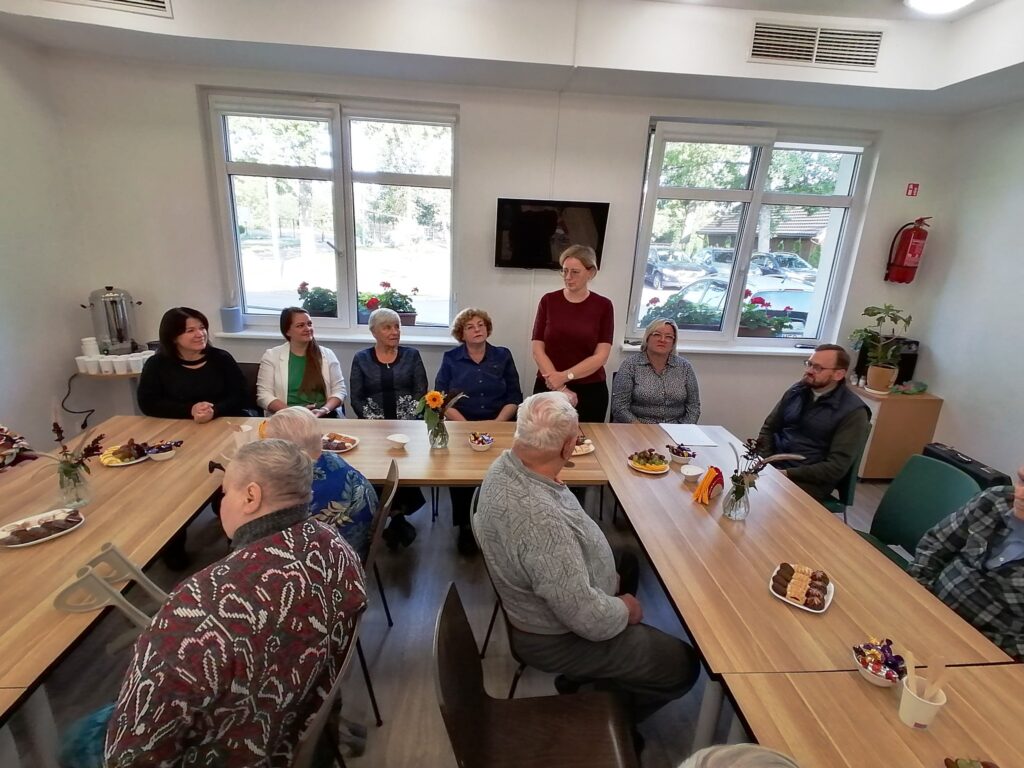 Šiandien į senelių namus atvyko nemažas būrys svečių iš Subačiaus: Šv. Pranciškaus Asyžiečio parapijos klebonas V. Bloškis, bendruomenės pirmininkė P. Skrebienė, seniūnijos vyr. specialistė R. Savickė, kultūros centro kultūrinės veiklos vadybininkė I. Pribušauskienė, meno vadovė I. Jėčiuvienė , bibliotekininkė A. Bukienė, mokytoja J. Naujokaitienė. Kartu su gyventojais prie kavos puodelio susirinkome paminėti Tarptautinės pagyvenusių žmonių dienos. Džiaugiamės svečių palinkėjimais, dovanomis, o labiausiai – nuoširdžiu bendravimu. Susitikimą užbaigėme traukdami smagias dainas.